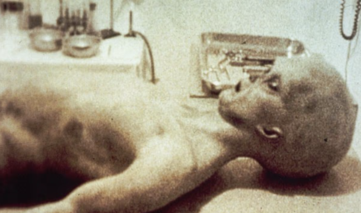 1995年8月,美国福克斯电视台播出的“伪纪录片”展示了三名身穿防护服的人员解剖疑似外星人尸体的画面。据称,所谓的“外星人尸体”来自1947年新墨西哥州罗斯威尔发生的不明飞行物(UFO)坠毁事件。